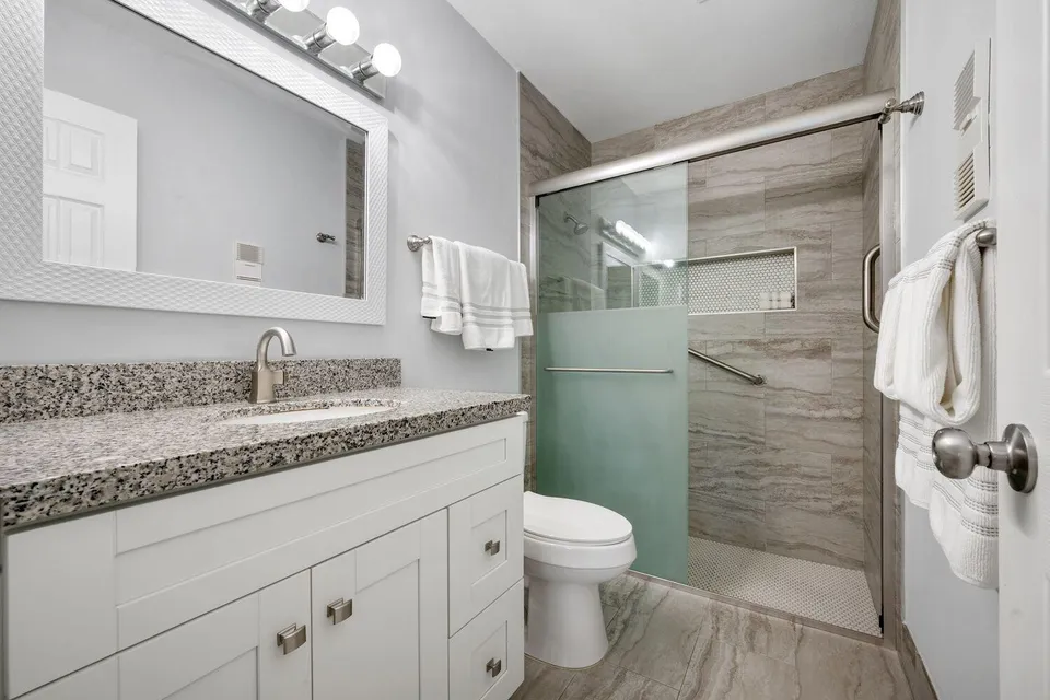 55 Plus - Welcome to Whisper Walk, a highly sought-after manned gated community in Boca Raton. This completely remodeled 2 bedroom, 2 bathroom condo is move in ready. Tile flooring flow throughout, neutral tones, recessed lighting, and elevated ceilings create an open, airy feel. The modern kitchen features white shaker cabinetry, stainless steel appliances, a pantry, and lots of granite counter space. The master suite is relaxing with a walk-in closet, granite vanity, and step-in shower. Residents of Whisper Walk enjoy a plethora of amenities, including multiple swimming pools, tennis courts, a clubhouse, fitness center, shuffleboard, and more! Ideally located just minutes from the beach, Mizner Park, Delray Beach's Atlantic Avenue, premier restaurants, shopping, golf courses, and places of worship. Utilities such as water, cable, and trash service are included, making it an easy choice for those seeking a stress-free move-in experience.